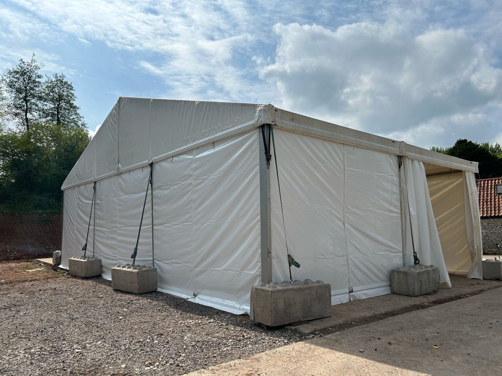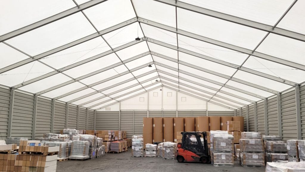 We can provide our temporary warehouse buildings with shutter doors, personal doors, lighting, full climate control and warehouse racking. Walls and roofs can be provided in PVC or solid material for extra durability and security.